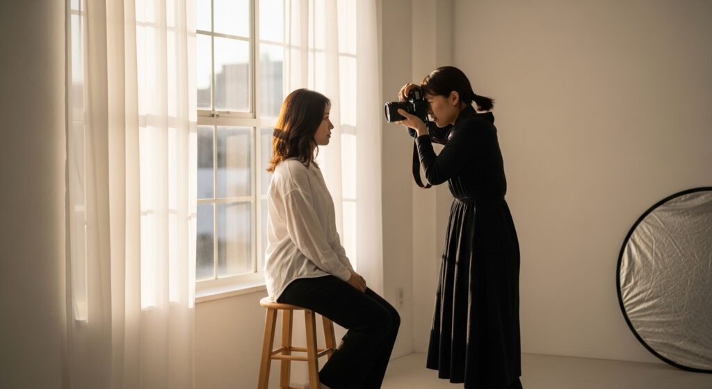 窓からの自然光を活用する際は、レースカーテンやディフューザーで光を調整し、レフ板で影を起こすことで、プロ並みの写真を撮影することができます。マジックアワーやゴールデンアワーを活用すれば、ドラマチックで印象的な写真を撮影できます。事前の準備と時間との闘いが重要なポイントです。