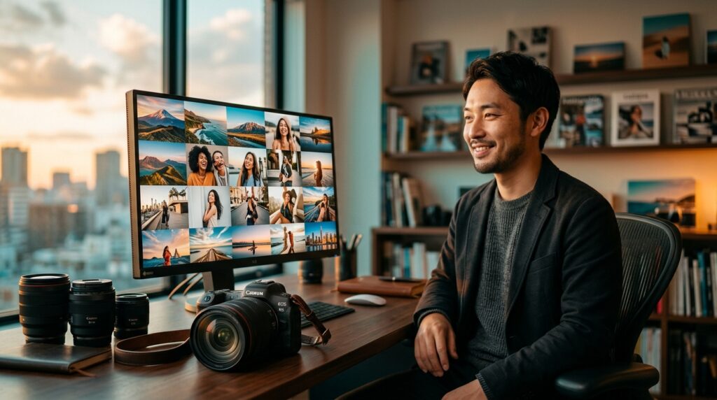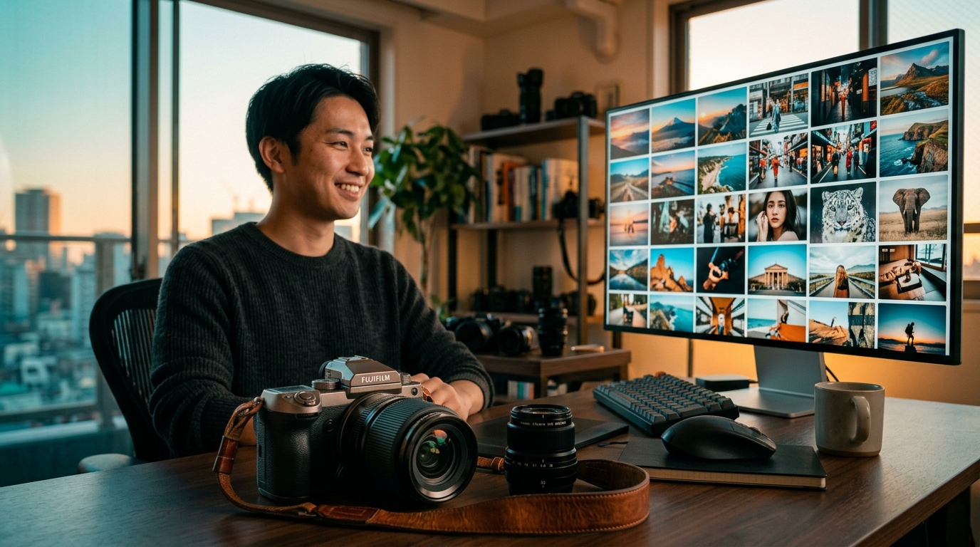 ストックフォトで年間収益10万円を達成するためには、PIXTA・Adobe Stock・Shutterstock・写真ACなど複数のプラットフォームを活用し、1500枚から2000枚の素材を戦略的に登録するポートフォリオ構成が必要です。年間10万円は月平均約8,300円に相当し、ビジネスシーンを30〜35パーセント、人物・ライフスタイルを25〜30パーセント、季節・イベント関連を20〜25パーセントという黄金比率でポートフォリオを構成することで、安定した収益の達成が見込めます。本記事では、2026年最新のプラットフォーム動向やAI生成画像の影響も踏まえ、ストックフォトで年間収益10万円を達成するための具体的なポートフォリオ構成戦略と18ヶ月のロードマップを詳しく解説します。